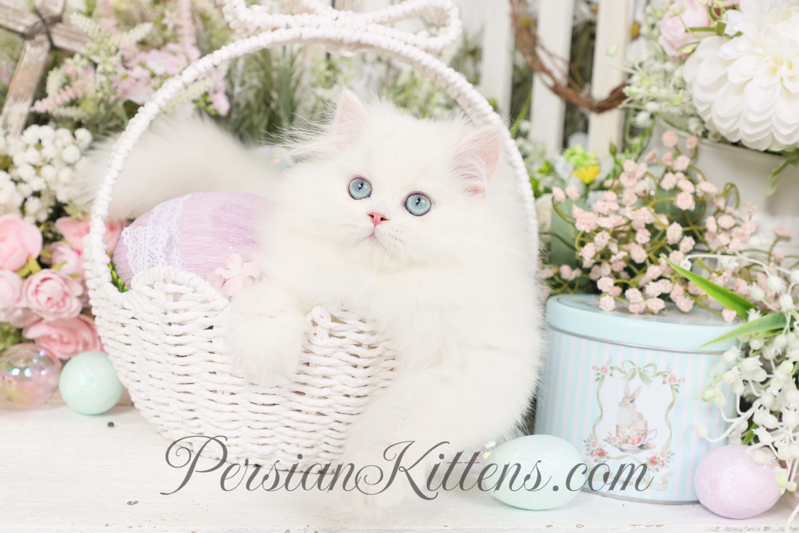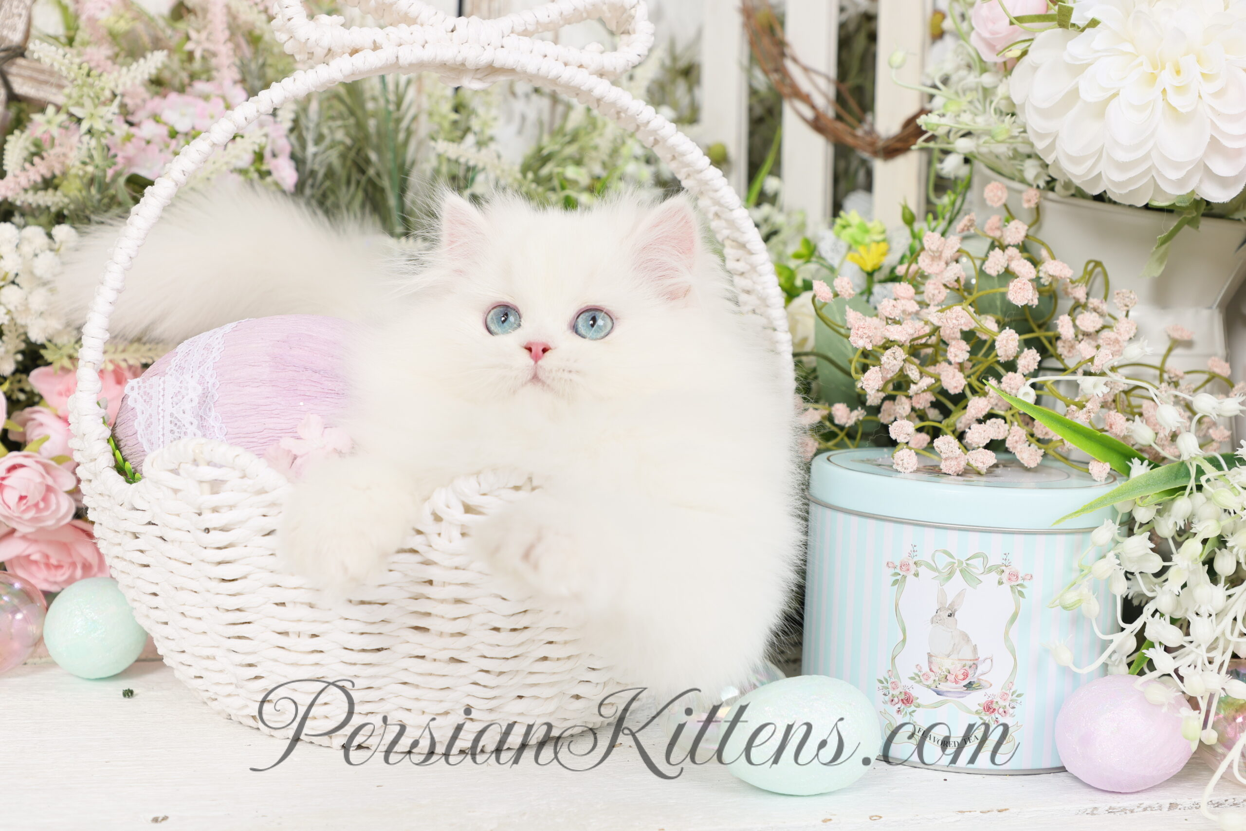 Mr. Bigglesworth is a snowy puff of sweetness with the softest cloud-like coat and the dreamiest baby-blue eyes you’ve ever seen. When he looks up at you, it feels like he’s peeking straight into your soul. He has that classic doll-face expression that melts you instantly — equal parts innocent, curious, and completely smitten with his people.