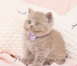 Just like her name, Periwinkle is a soft, dreamy hue of lilac wrapped up in the most huggable, lovable package you could ever imagine! This sweet Exotic Shorthair girl is overflowing with charisma — she has that special sparkle that lights up every room she prances into.